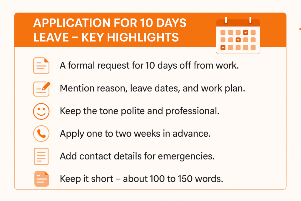 In this guide, you will learn how to write an effective 10 days leave application and see sample formats you can easily copy and use.